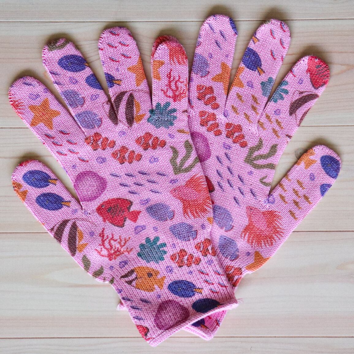手のひら側にはデザインはなく、カラー軍手の地の色となっております。